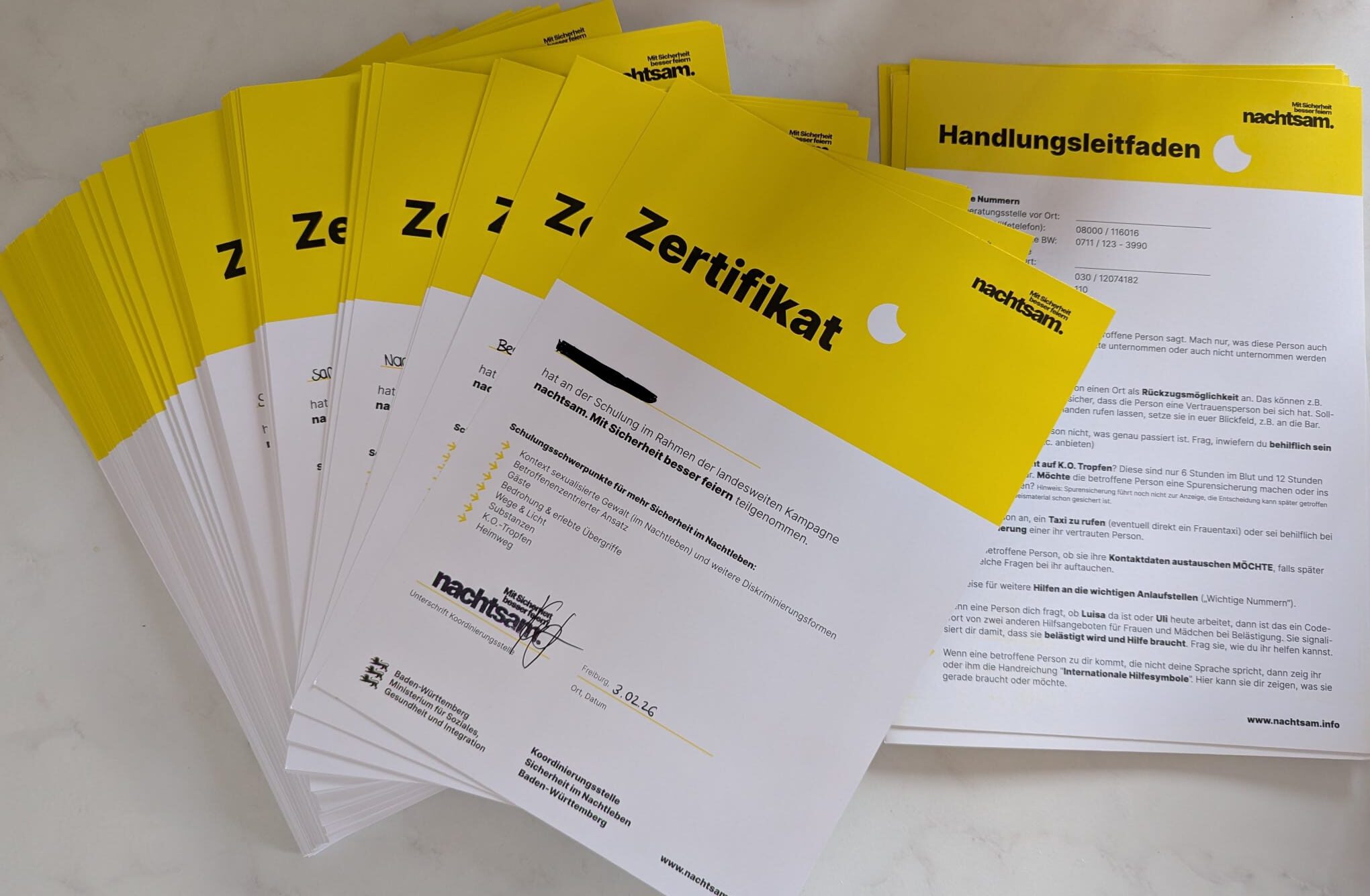 Erfreulich war auch die Beteiligung der Pfullendorfer Gastwirte, die sich der Initiative anschlossen. Mit der gemeinsamen Schulung setzen Zunft und Gastronomie ein klares Zeichen für Verantwortung, Prävention und ein sicheres Miteinander – damit Ausgehen in Pfullendorf unbeschwert möglich bleibt.